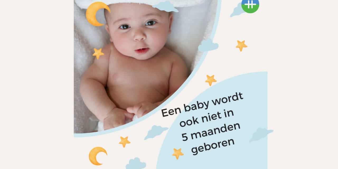 Het is net als een baby krijgen. Dat duurt 9 maanden, dat weet je gewoon. Je kunt niet zeggen: “Het komt even niet zo goed uit met mijn werk, dus kunnen we het niet wat korter doen, in 5 maanden of zo?”