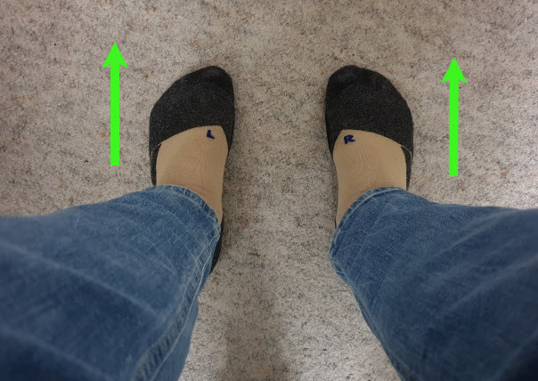Loop even heen en weer of marcheer op de plaats en stop dan. Kijk naar beneden naar de stand van je voeten. Staan deze naar buiten? En zo ja een meer dan de ander? Of staan ze mooi recht naar voren zoals in het plaatje verderop?